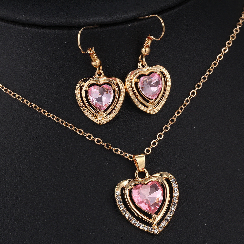 3 Kinds of Design Jewelry Set Austrian Crystal Love Heart Pendant Necklace Earrings for Women Wedding Gift